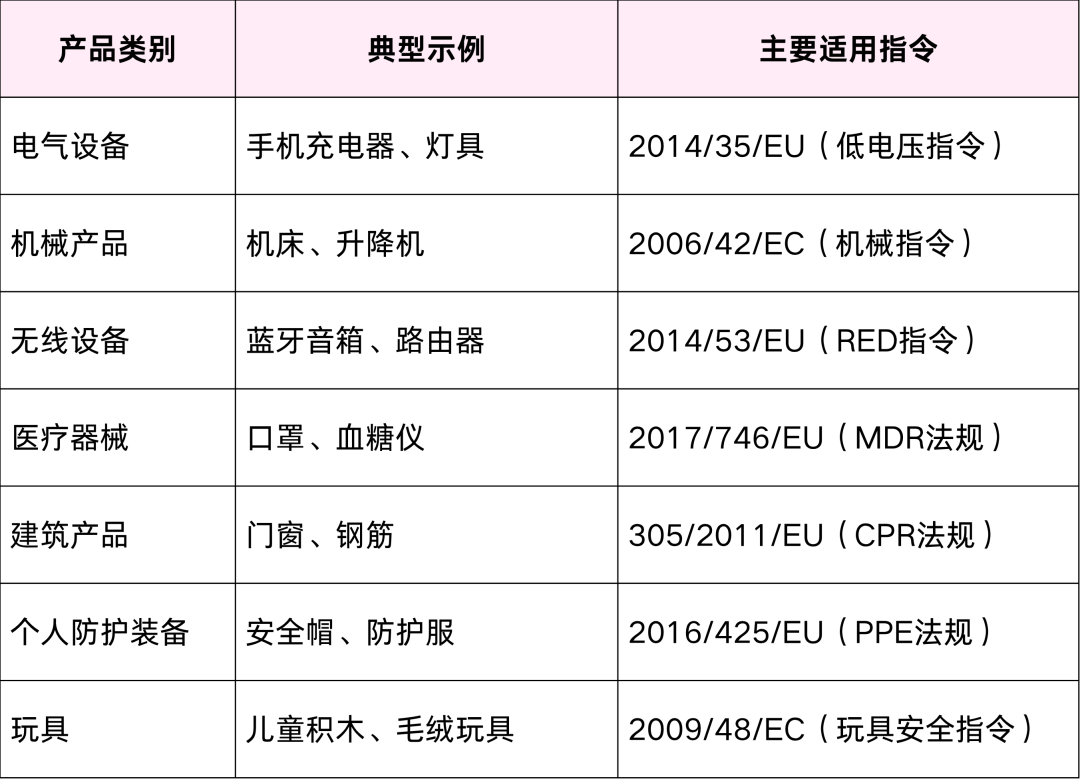 1、强制适用CE标志的常见产品